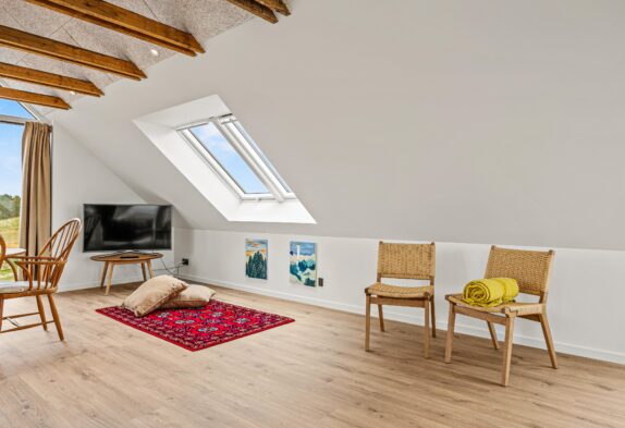 Nyd komforten i 2 badeværelser, der er udstyret med gulvvarme og en innovativ luft-til-vand-varmepumpe. Med huset får du desuden en udendørs bruser (fra 1. april til 31. oktober) til ren wellness efter en lang dag på stranden – sommerhuset ligger kun 150 meter fra den fantastiske, brede strand i Blåvand, så I kan hurtigt få sand under fødderne og sol på næsen på varme sommerdage eller gå en forfriskende tur i efteråret, varmt påklædt, og blive blæst igennem af den vestjyske vind.