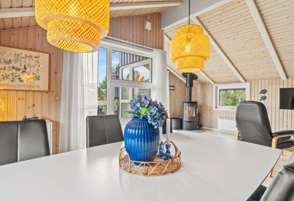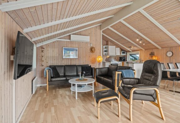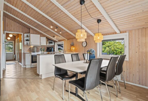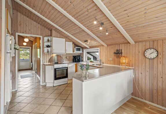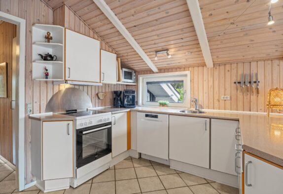 Det veludstyrede køkken med opvaskemaskine og den effektive varmepumpe, vaskemaskine og tørretumbler vil gøre dit ophold så behageligt som muligt. I opholdsstuen skaber brændeovnen en hyggelig atmosfære på kølige aftener. Badeværelset er udstyret med et afslappende spabad, der er gulvvarme både her samt i det ekstra gæstetoilet. Med 3 soveværelser, alle med en dobbeltseng (180×200 cm), er der intet, der står i vejen for en god nats søvn.