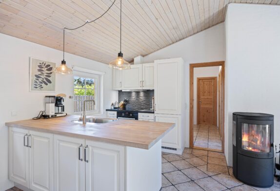 Alle jeres behov bliver imødekommet her på Troldedalen 67. Her er en vaskesøjle hvilket betyder, at I nemt kan holde jeres garderobe ren og undgå at overpakke. En luft-til-luft-varmepumpe og en hyggelig brændeovn sørger for, at I altid kan holde en behagelig temperatur – uanset vejret udenfor. Ligesom resten af sommerhuset er køkkenet veludstyret, blandt andet med opvaskemaskine og en separat fryser på 80 liter, hvilket gør oprydningen efter middagen nem og giver jer masser af opbevaringsplads til medbragte madvarer.