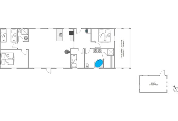 Sommerhuset er desuden strategisk placeret kun 1.900 meter fra indkøbsmuligheder i Søndervig, så I altid kan have friske forsyninger til madlavningen. Søndervig er en ægte ferieby med et væld af gode restauranter, som helt sikkert er et besøg værd, hvis I ikke selv gider stå for madlavningen.