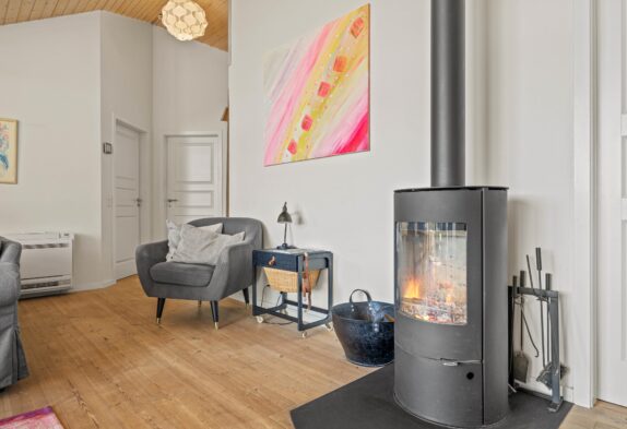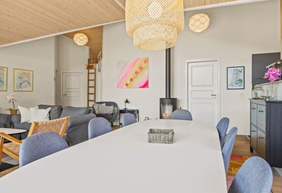 I køkkenet gør opvaskemaskinen oprydningen til en leg, mens de 2 badeværelser sikrer, at der aldrig er kø om morgenen. Skal der lidt ekstra afslapning til, kan I nyde varmen fra saunaen eller tage et dyb i den indbydende tømmespa, hvor I kan lade dagens oplevelser synke ind. På kølige aftener skaber brændeovnen en hyggelig atmosfære, der forvandler stuen til det perfekte sted at samles efter en dag fyldt med eventyr.