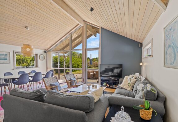 Indenfor i sommerhuset finder I alt, hvad der er nødvendigt for at sikre en afslappende og bekvem ferie. Her er der 8 sovepladser fordelt på 4 komfortable soveværelser og 2 sovepladser på hemsen, som giver god plads til både familier og større grupper, hvor børnene helt sikkert vil være glade for hemsen.