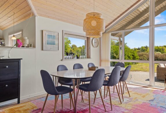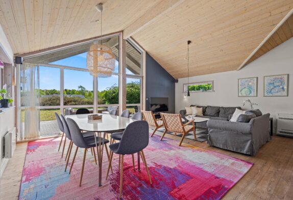 Skal vennegruppen eller den store familie afsted er Enebærvangen 7 i Jegum Ferieland, som er bygge i 2005, et oplagt valg. Huset byder på et indeareal på 113 m2, som er velegnet til op til 10 personer og 1 hund. Inde i huset finder I 4 soveværelser og 1 hems, hvor I kan slå jer ned. Skal der mere ro er der også en tømmespa og sauna, som giver muligheder for ekstra afslapning.