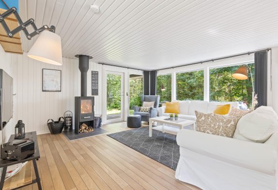 Her er virkelig lyst og indbydende, og der er skabt en skøn atmosfære, hvor I med sikkerhed vil føle jer veltilpas. Til at varme rummet op, har I udover brændeovnen også en effektiv luft-til-luft varmepumpe, der også kan sørge for en behagelige indetemperatur og indeklima. Grundet totalrenovering i 2020 står huset skarpt og moderne, og der er taget mange gode valg, der alt i alt er med til skabe en dejlig og hyggelig atmosfære.