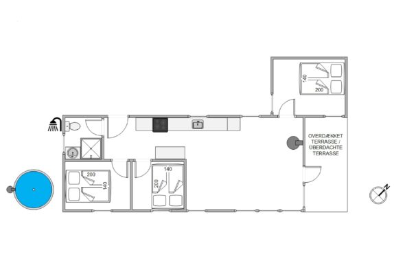 Det er også udenfor at I finder feriehusets vildmarksbad og udebruser, som bidrager til en ekstra god feriefølelse, hvor I bare kan slappe helt af.