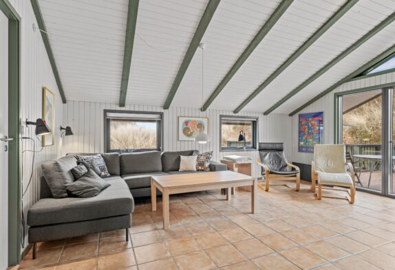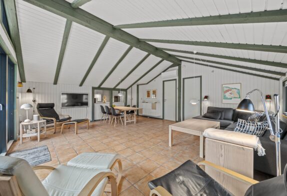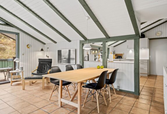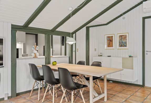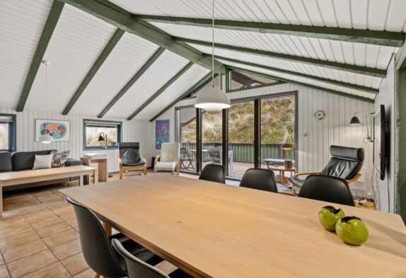 Sommerhuset, som har gennemgået en renovering i 2024, rummer 110 lyse og funktionelle kvadratmeter, hvor der er skabt en fin balance mellem moderne bekvemmeligheder og afslappet feriestemning. I opholdsrummet kan I nyde tiden sammen i sofaen, finde jer til rette med en god bog eller spille et brætspil i rolige omgivelser.