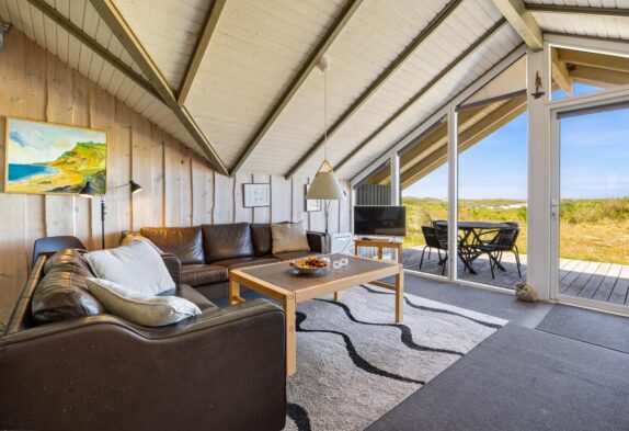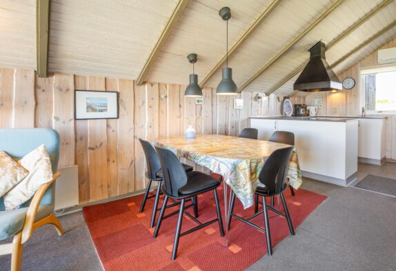 Med et areal på blot 72 kvadratmeter er sommerhuset kompakt, men yderst funktionelt indrettet. Hjertet på Nordsøvej 252 er uden tvivl det hyggelige køkken-alrum. Her kan I foretage jer mange forskellige ting sammen med jeres medrejsende. Ved sofamøblementet er der et fladskærms-tv, så I kan nyde en god film, mens I slapper af på sofaen. I opholdsrummet er der en varmepumpe, som hjælper med at holde en behagelig temperatur året rundt. Fra opholdsrummet kan I også nyde den enestående panoramaudsigt gennem det store vinduesparti.