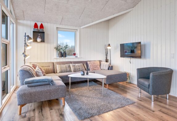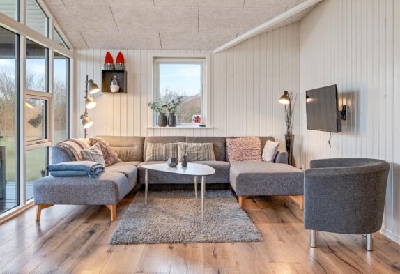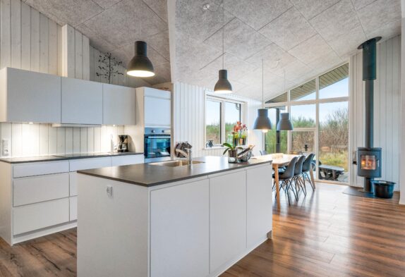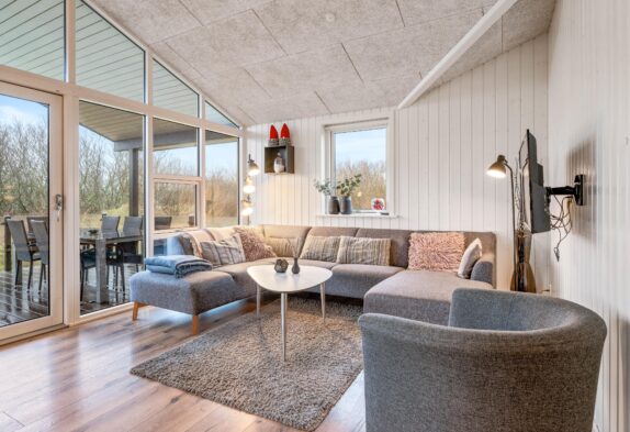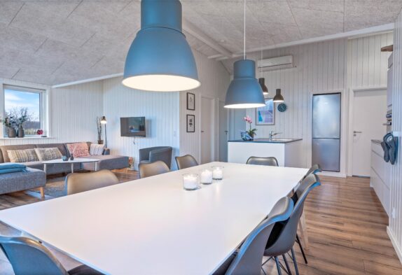 Et dejligt feriehus til otte personer, hvor jeres to firbenede venner også er velkomne. Den enkelte og moderne indretning skaber et feriehus, hvor man føler sig tilpas og har lyst til at være. Hjerterummet er det åbne køkken-alrum, hvor de store vinduer inviterer naturen indenfor. Her kan I koncentrere jer om hinanden og hygge jer med fælles madlavning, filmaftener i sofakrogen, sjove spil og planlægningen af feriens udflugter.