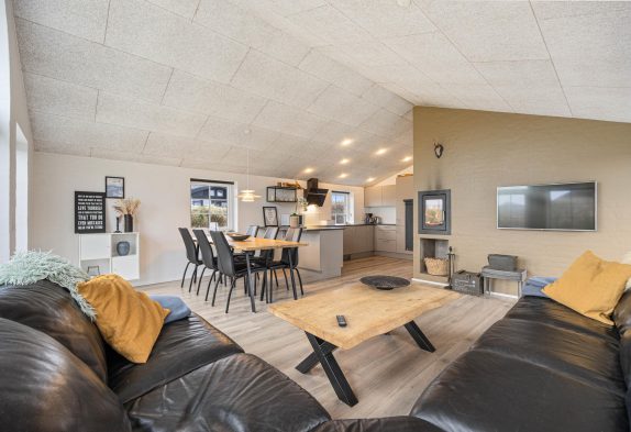 Dette skønne hus på Holdvej 9A er opført i 2017 og er både moderne og lyst indrettet. Fordelt på 93 kvadratmeteter finder i stuen der er forbundet med det åbne køkken, hvilket giver et stort rum, hvor familien kan samles om måltider og hygge. Indvendigt er det lyst og moderne med loft hele vejen til kip, hvilket giver en god rumfornemmelse. Sommerhuset indeholder også alle de faciliteter I kunne ønske jer i et sommerhus, og det er derfor perfekt til at danne rammen om en skøn ferie for hele familien i Søndervig.