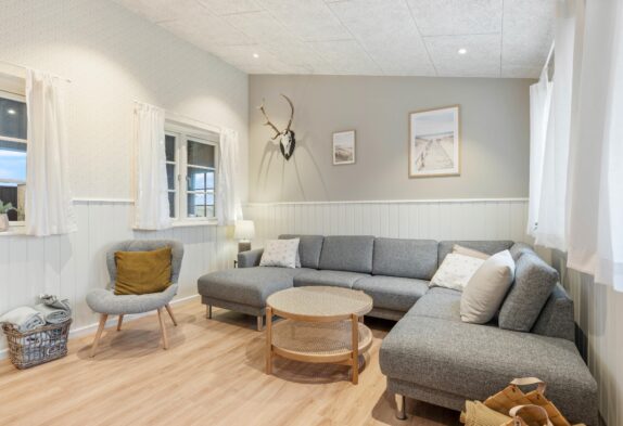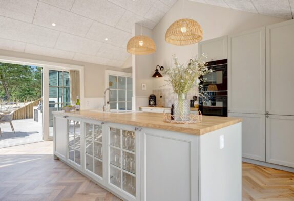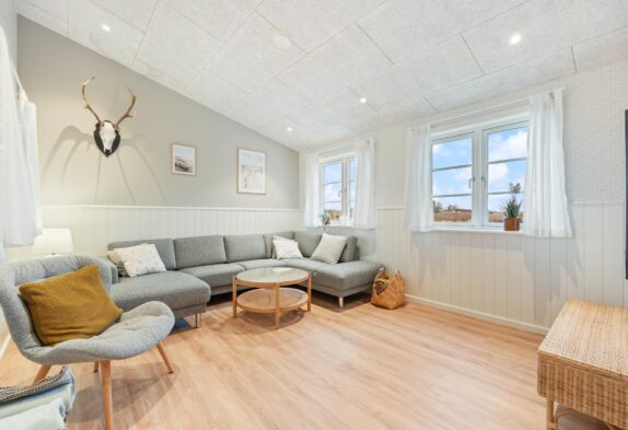 Sommerhuset på Bjerregårdsvej 189 er bygget i 2025 og har med sine 180 kvadratmeter god plads til 10 personer. Indretningen er moderne og holdt i rolige og lyse nuancer. Her er et stort åbent køkkenalrum med et veludstyret køkken, stue og spiseplads i ét – centralt i rummet står den knitrende hyggelige brændeovn. Her er god plads til hyggeligt samvær – uanset om det er afslapning på sofaen, tilberedning af lækre måltider eller hyggelige brætspilsaftner. Med et Chromecast kan I altid streame jeres yndlings-programmer, når det passer jer.