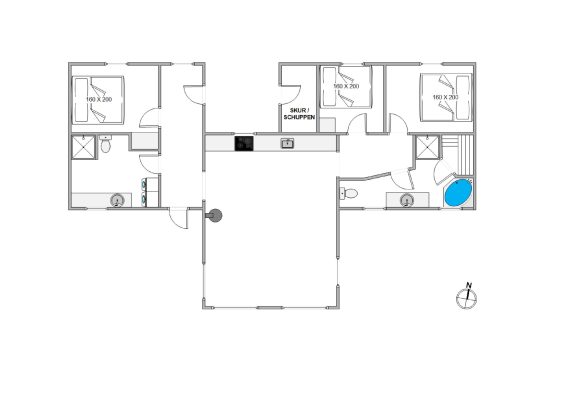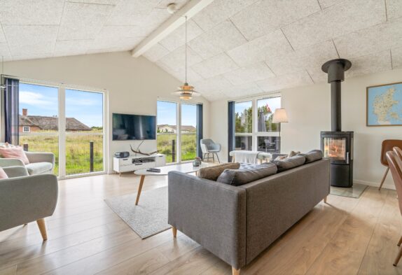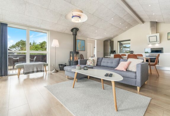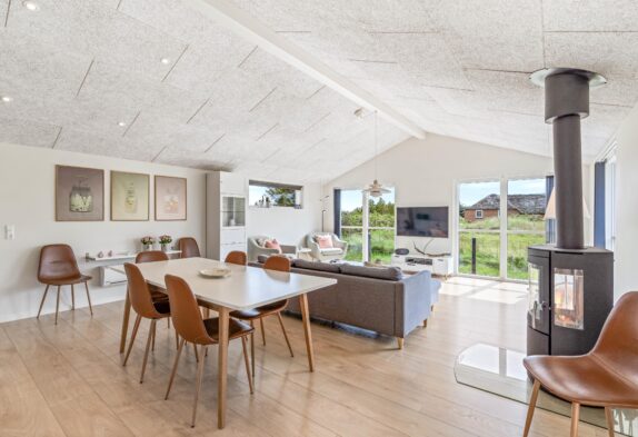 I hjertet af feriehuset har du det åbne køkken og stuen, som indbyder til fælles madlavning, afslapning og hyggeligt samvær. I stuen har du også en brændeovn, der sørger for lidt ekstra varme og hygge på de køligere dage.