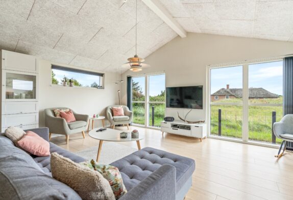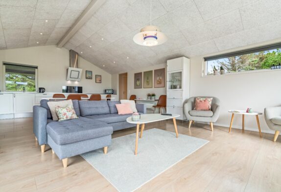 Feriehuset på Vestklitvej 45 er dejligt indrettet, så det er helt perfekt til en afslappende ferie med hele familien – hunden er jo også meget velkommen.