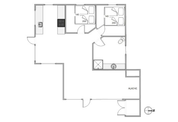 Feriehuset er opført i gode materialer og fremstår både hyggelig og indbydende, et perfekt sommerhus til at nyde de knitrende flammer fra brændeovnen i efter en tur langs havet. Der er to værelser, som begge er indrettet med dobbeltsenge, og et dejligt badeværelse med vaskemaskine og gulvvarme.
