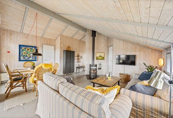 Indenfor venter 88 m2, der passer godt til både familieferie og turen med vennerne. Sommerhuset har 3 soverum med plads til i alt 5 personer. På køligere dage kan I tænde op i brændeovnen og nyde varmen, mens en luft til luft varmepumpe hjælper med at holde en behagelig temperatur året rundt.