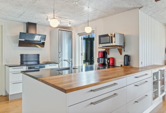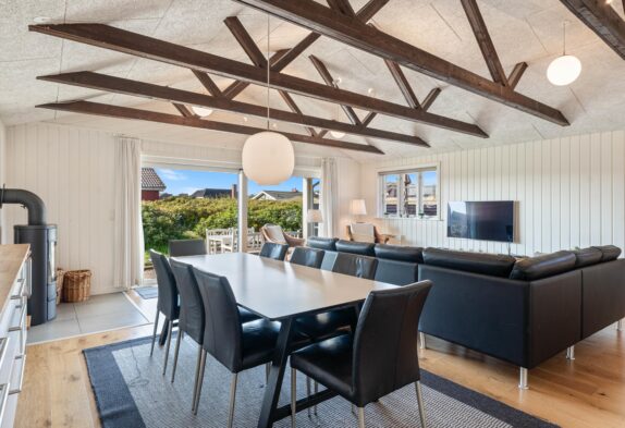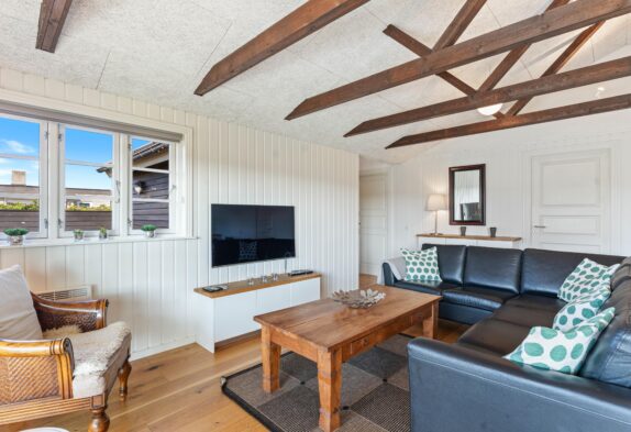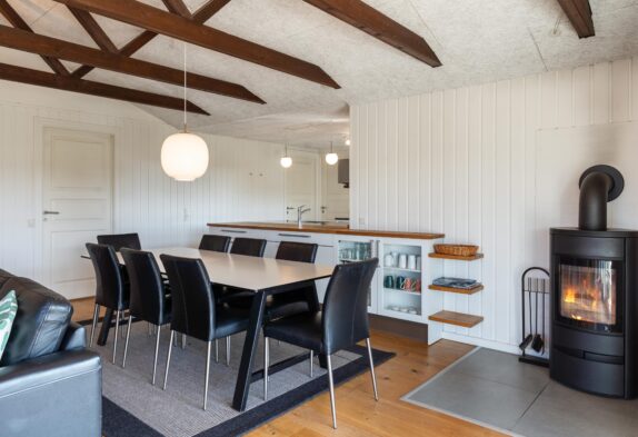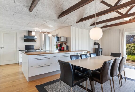 Hafavej 139 kan byde på et ægte og hyggeligt sommerhus i træ, bygget i den stil de oprindelige huse var det i Søndervig, men naturligvis i en meget mere moderne version. Indvendigt er der loft som går hele vejen til til kip i stuen og med hyggelige og synlige bjælker, er der blevet skabt en rummelig og meget hyggelig rumfornemmelse. For at tilføje endnu mere hygge og varme i indretningen, er der sommerhuset også med en brændeovn, der på de kølige dage kan hjælpe med at sprede en masse varme og hygge, der alt I alt er med til at skabe den skønneste atmosfære.