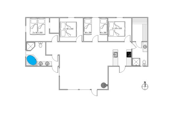 Sommerhuset er yderst velholdt, og der er 4 værelser og 2 badeværelser, og til børnenes store glæde, er der et både et indespa og sauna i det store badeværelse, der giver jer mulighed for at nyde lidt hjemme-wellness. Hele sommerhuset er desuden med troldteks loft, der både giver et stilrent look, men særligt også en god akoustik. Sammen med det store vinduesparti i stuen, sørger troldteksloftet bare for en lys og hjemlig fornemmelse i maven.