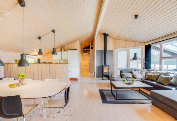 Fra stuen har I fuldt overblik over poolområdet, så I kan holde øje med de små, mens I selv hygger jer. På kølige efterårsaftener kan I tænde op i brændeovnen og lade varmen brede sig, mens I spiller kort og skaber hyggelige familieaftener. Til opvarmning kan I også benytte den energibesparende varmepumpe.
