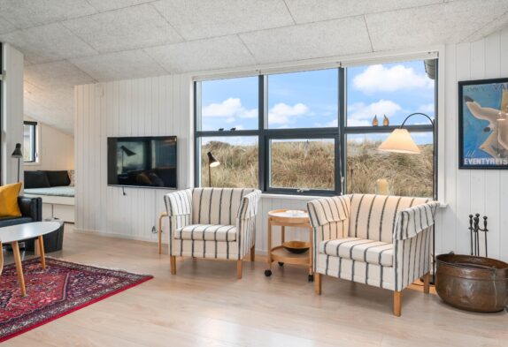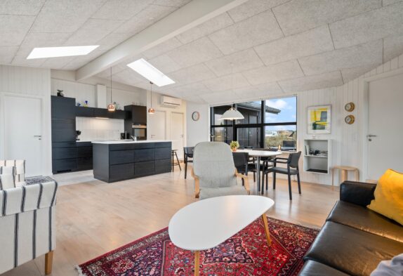 Det nye, moderne feriehus på Arvidvej 258 har en rigtig fin beliggenhed. Stranden ligger blot 500 meter fra feriehuset, og I kan hurtigt nå den til fods. Her kan I nyde de skønne solskinstimer og gå lange ture i sandet – måske endda med de bare fødder i vandkanten?