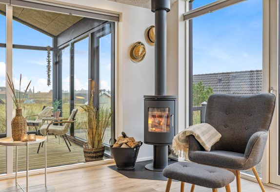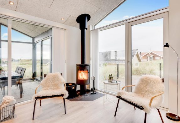 Glæd dig til at svinge benene op foran den knitrende brændeovn med et godt glas vin i hånden, mens du på mobilen sender et snapshot til vennerne derhjemme via sommerhusets hurtige fiberbredbånd.