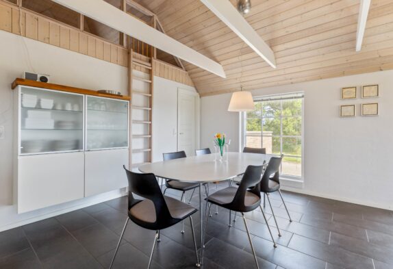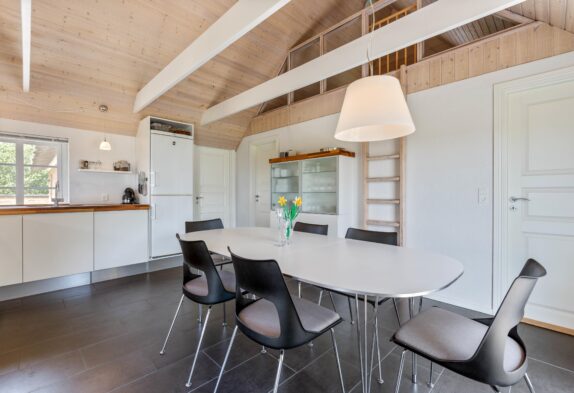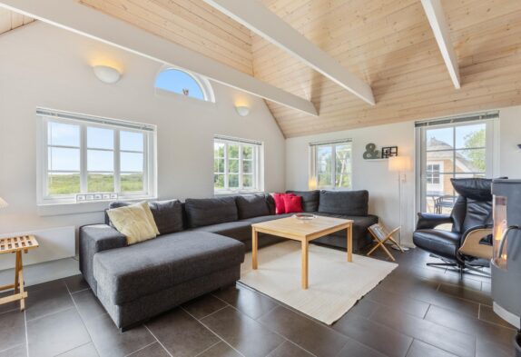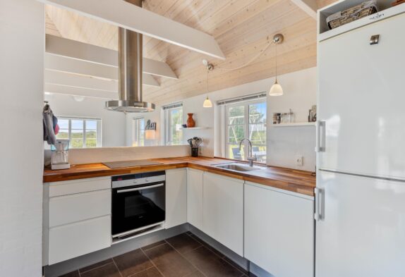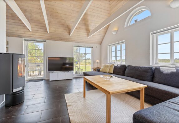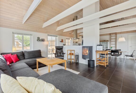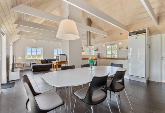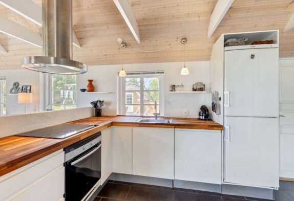 Det skønne ikke-ryger hus i Klegod er lækkert og lyst indrettet. Væggene er hvide, der er højt til loftet, og de store vinduespartier i stuen lader solens stråler lyse rummet op, samtidig med I får en flot udsigt over området. Stuen er åbnet op til køkkenet, og det store åbne rum giver rig mulighed for familietid og hygge.