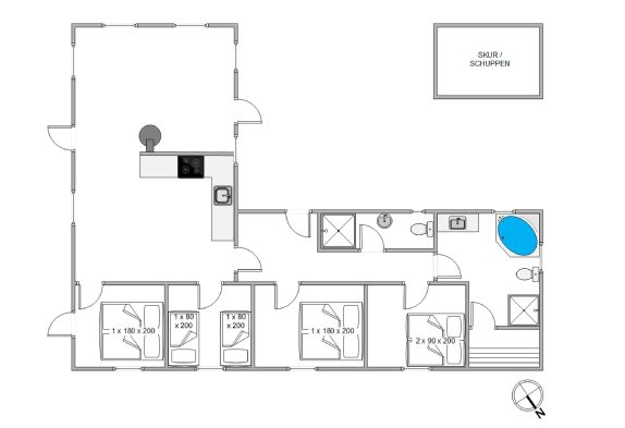 For at toppe det hele af, er huset udstyret med et spabad og en sauna, så I rigtig kan slappe af og få varmen igen efter de lange gåture på sommerlandets mange små, snørklede stier. Det giver en følelse af ægte luksus, og så er det en helt perfekt måde at runde en god dag ude i den friske luft af på.