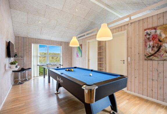 Mens I nyder freden og roen, er der både billardbord og bordfodbold til børnene (og de barnlige sjæle), så de ikke kommer til at kede sig. Som en perfekt afslutning på dagen kan I nyde et glas vin i sofaen, mens I gennem de store vinduespartier i stuen kan betragte den smukke aftenhimmel blive malet orange af solens sidste stråler.