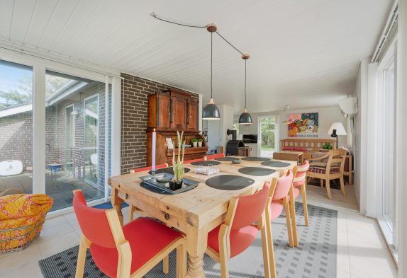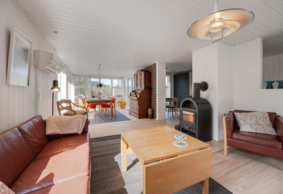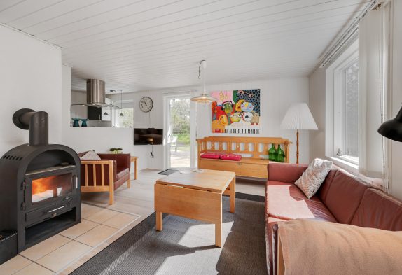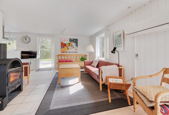 Sommerhuset har alt, hvad I behøver for en behagelig ferie. Med en rummelig grund på 1466 m2 kan I virkelig nyde naturen og føle jer tæt på det danske landskab. Sommerhuset har en hyggelig brændeovn, perfekt til de kølige aftener, og en luft til luft varmepumpe, der sikrer et behageligt indeklima året rundt. Med 87 m2 husareal er der god plads til at slappe af og nyde hinandens selskab.
