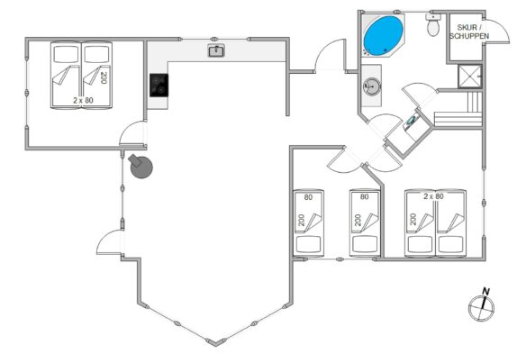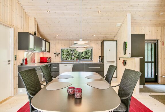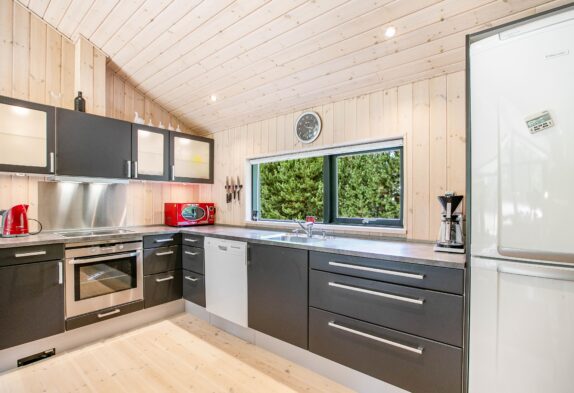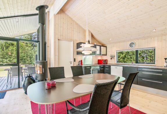 Dette 6 personers hus har alt, hvad I har brug for, hvis I gerne vil holde en skøn og afslappende ferie. Saunaen og spaen sørger for, at I kan give slip og koble fuldstændig af for en stund, mens brændeovnen men sin varme og dragende flammespil sørger for skøn feriestemning på de kølige dage.