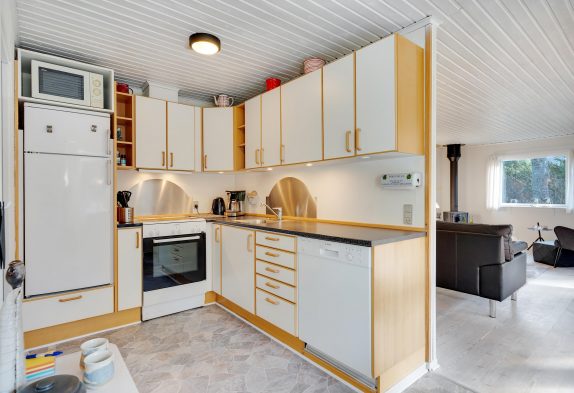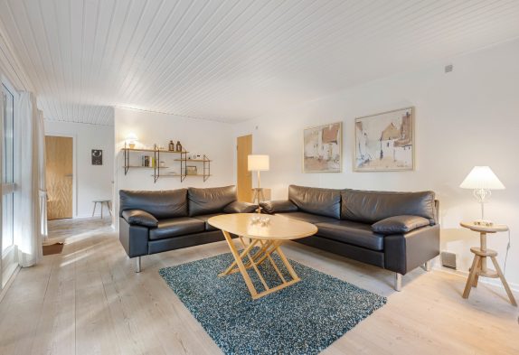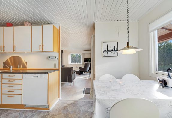 De lyse vægge og den moderne hyggelige indretning byder jer varmt velkommen i det nye feriehjem. I det veludstyrede køkken kan dagens middag kokkereres, mens resten af flokken hjælper med borddækningen, og efter maden kan I læne jer tilbage i sofaen, mens opvaskemaskinen klarer dagens oprydning for jer.