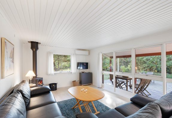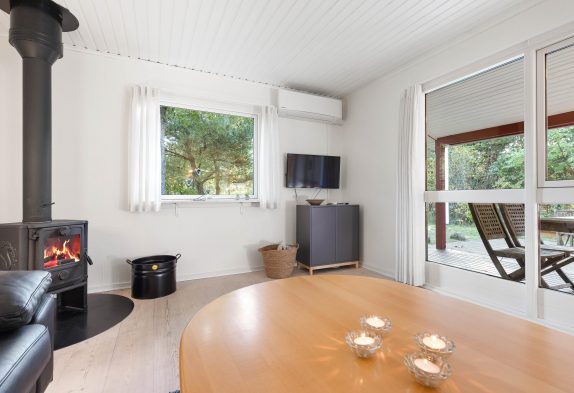 Brændeovnen i stuen er den perfekte stemningssætter, og de knitrende flammer vil hurtigt fylde rummet med en behagelig varme og en afslappende atmosfære, mens I samles om en god film i fjernsynet.