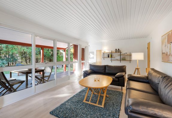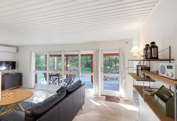 Allerede ved første blik på det røde træhus, vil feriestemningen sænke sig over jer. Her bor I på en velholdt grund med smuk natur så langt, øjet rækker, og både på terrassen og på den store græsplæne gemmer der sig flere små hyggekroge, hvor I kan sidde og nyde det gode vejr.
