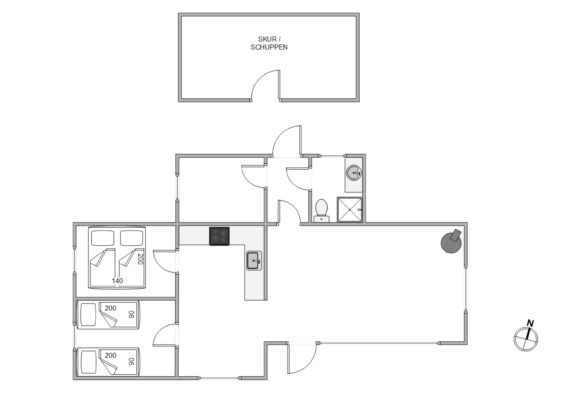 Ved den overdækkede indgang har I en ekstra baggang med plads til opbevaring. Til de træningsglade er der i skuret både vægte og et stativ til at lave dips, så træningen kan holdes ved lige, selvom I er langt hjemmefra.