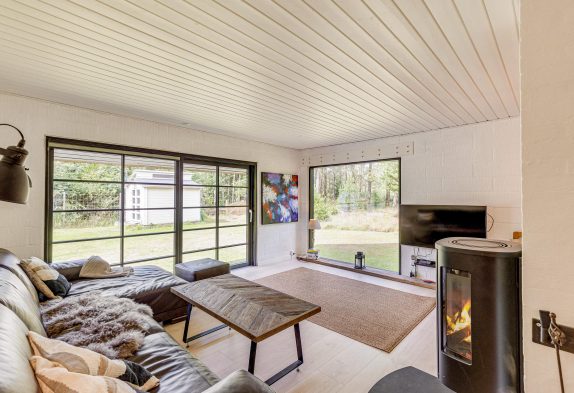 Ægte sommerhusstemning med hyggelig brændeovn