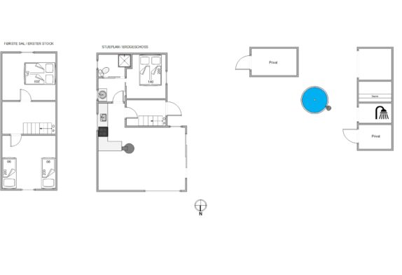 Huset rummer tre soveværelser fordelt på to plan. Med en dobbeltseng på stueetagen og yderligere to værelser på førstesalen; det ene med en dobbeltseng og det andet med to enkeltsenge, er sommerhuset perfekt til børnefamilier. Badeværelset, med gulvvarme og en praktisk vaskemaskine, sikrer komfort og nem tøjvask under jeres ophold.
