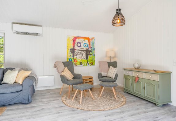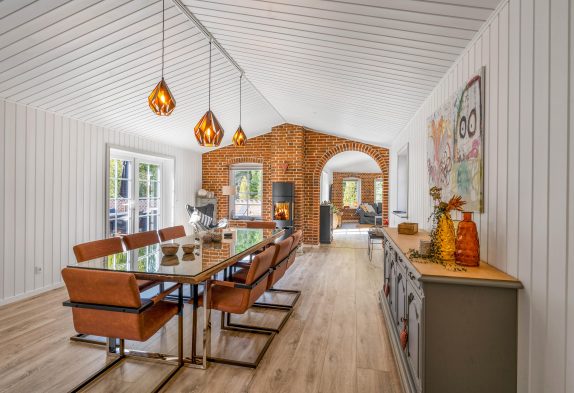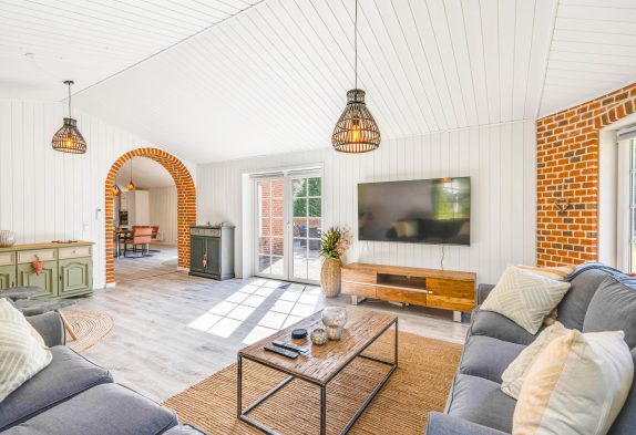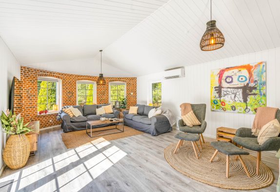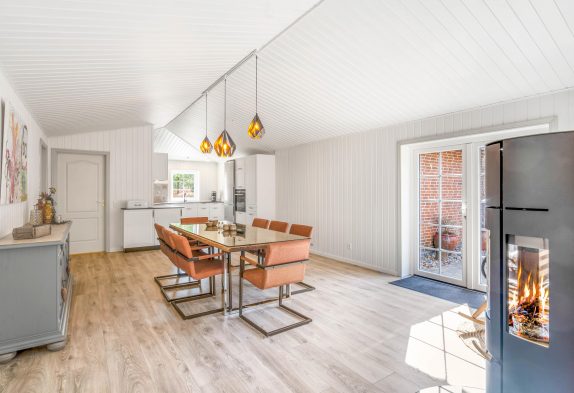 Hvis I virkelig trænger til at komme væk hjemme fra, væk fra verdensstress og jag, hvor I kun skal tænke på jer selv og samvær med børnene. Så tag et kig på dette feriehus på Hans Hansensvej 7 i Houstrup. Feriehuset som er renoveret i 2022, fremstår nu lyst, lækkert og meget indbydende, og venter bare på at I skal træde ind ad døren. Allerede ved første øjekast vil I se at der er kræset for sommerhuset og dennes indretning. Feriehuset er på hele 165m², har 3 store lyse soverum, 2 gode badeværelser, en lille wellness oase hvor I kan forkæle jer med en tur i den boblende spa eller en tur i den varme sauna. Det store rummelige køkken, har alt det I skal bruge for at tilberede jeres næste middag og ligger i åben forbindelse til spisestuen, som går videre ind i stuen. Den hyggelige stue kommer til at danne rammen for mange hyggelige familieaftener med spil og film, og på de kølige dage vil brændeovnens knitrende flammer i baggrunden sprede varme og fredfyldt feriestemning. Her bliver nærvær og samvær sat i fokus.