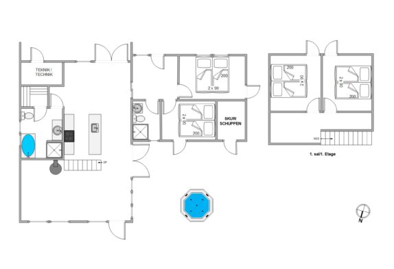 Huset er fyldt med underholdning for både store og små. Det bedste ved huset er måske den skønne udendørsspa. Tænk at læne sig tilbage i det varme vand og kig op mod den blå himmel eller tælle stjernerne på nattehimlen. At bade under åben himmel er en dejlig og afslappende oplevelse. Til de voksne vil spabadet og saunaen i det store badeværelse sikkert også falde i god smag, og mens der bliver slappet af, kan børnene hygge sig med bordfodbold. Her får I helt sikkert et sommerhus med noget til enhver smag.