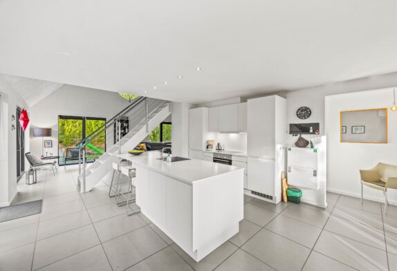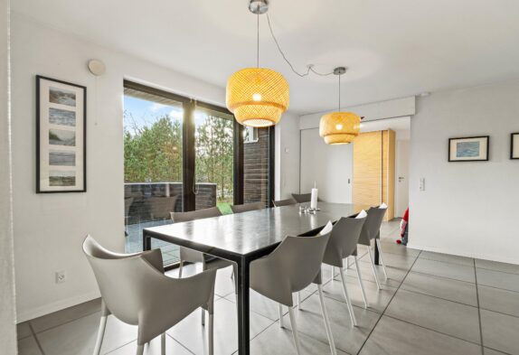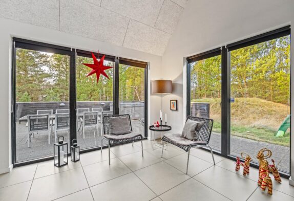 Det flotte stråtagssommerhus mangler bestemt ikke noget. Indretningen er lys og hyggelig i minimalistisk stil, og I vil føle jer godt tilpas, så snart I ankommer. Der er også tænkt på det praktiske, så I både har en vaskemaskine og tørretumbler til at klare tørnene.