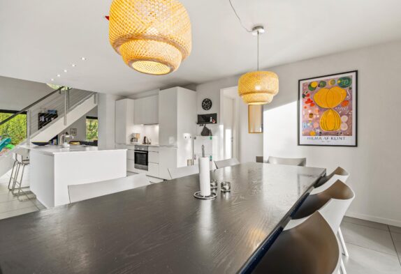 Huset på Jeppesvej 114 ligger på en dejlig naturgrund med to skønne terrasser, så I kan sidde i solen dagen lang. Til børnene er der både sat gyngestativ og sandkasse op på græsplænen, så de kan blive godt underholdt, mens I læser en god bog i liggestolen.