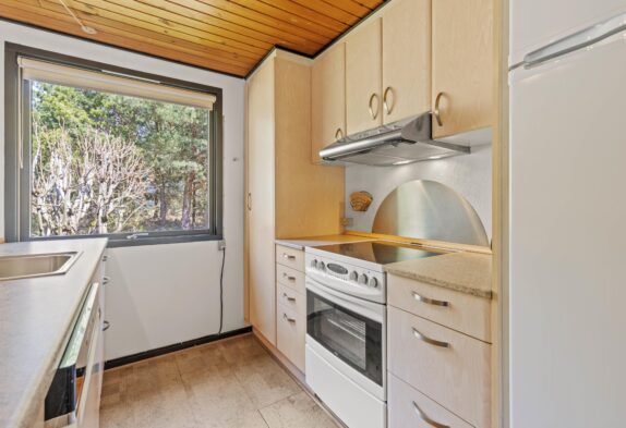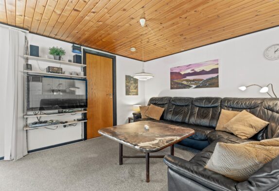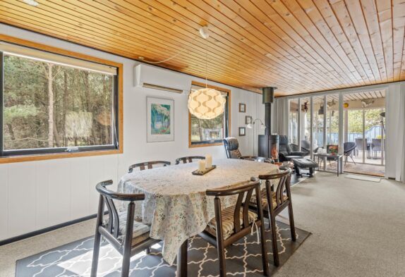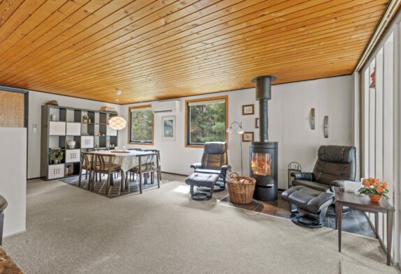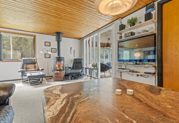I det åbne køkken kan I nemt tilberede gode måltider og da opvaskemaskinen klarer resten, er der god tid til familiespil ved spisebordet. I kan også tænde op i husets brændeovn og nyde den knitrende varme, mens I slapper af i de bekvemme stuemøbler og sammen ser en god film.