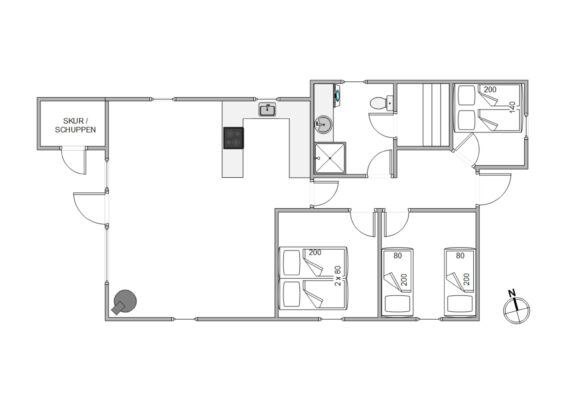 Har de mindste feriegæster fået udforsket hele det omkringliggende skovområde, så står gyngen og sandkassen klar, så de ikke kommer til at kede sig. På den store græsplæne, der omkranser huset, er der også god plads til leg og boldspil for både store og små.