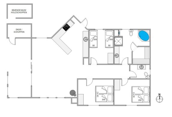 Der er både et gæstetoilet og et stort lyst badeværelse, hvor I efter en lang dag med frisk havluft rigtigt kan forkæle jer selv. Med spa og sauna er der virkelig afslapningsgaranti.