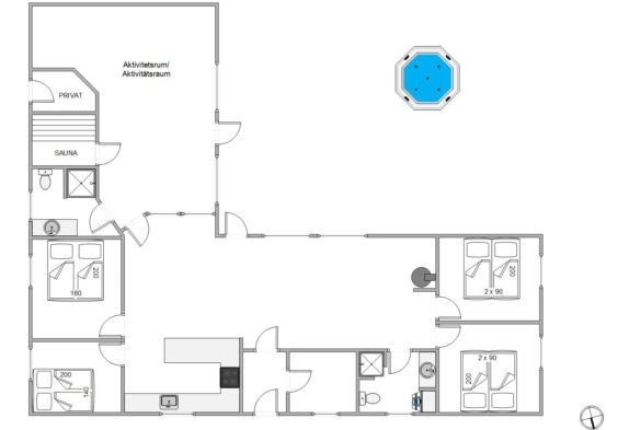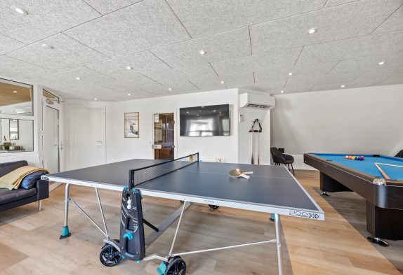 For at fuldende luksusfornemmelsen finder I også et stort aktivitetsrum i dette sommerhus. Dette rum byder på et poolbord, bordtennis, bordfodbold og dart, og er dermed et sandt paradis for især børnene og de barnlige sjæle.