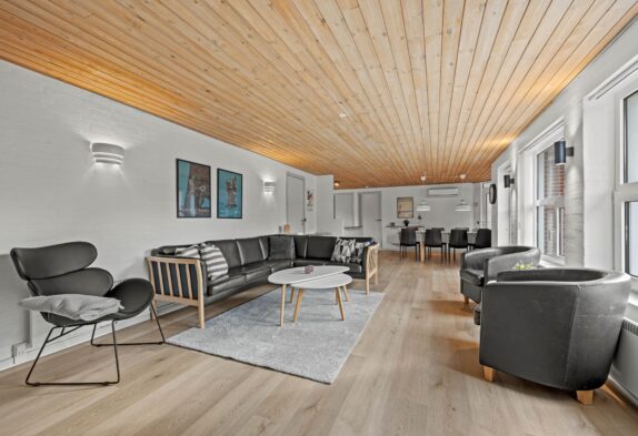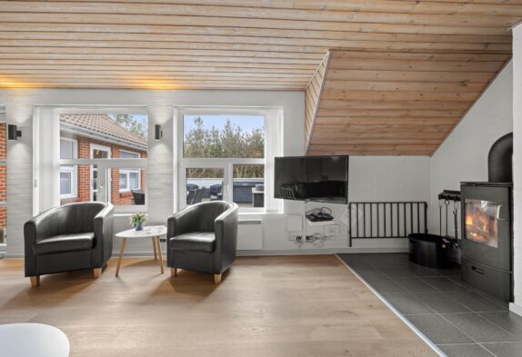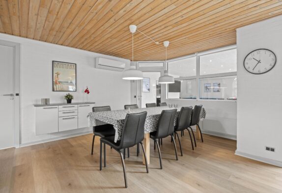 Det skønne murstenshus på Kærvej 33, som byder plads til 8 personer, er indrettet lyst, som bl.a opvarmes med varmepumpe.