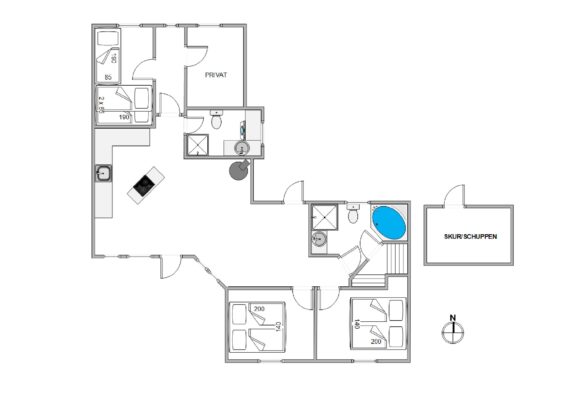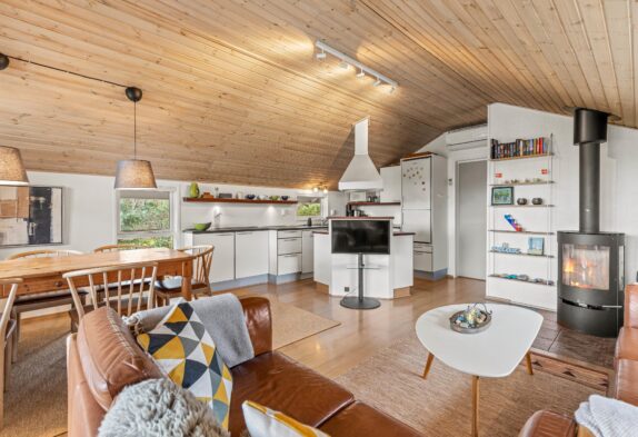 Her er plads til 7 personer, og med 2 badeværelser med bruser slipper I for de lange toiletkøer om morgenen, når der skal gøres klar til en ny feriedag. I det største badeværelse finder I også både et spabad og en sauna, hvor I rigtig kan koble af og glemme hverdagens stress.