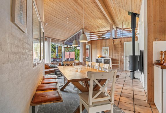 Meget praktisk er der et ekstra badeværelse, så I ikke behøver stå i kø til toilettet, samt det ekstra køleskab i skuret, så der er plads til al den lækre feriemad. Køkkenet er åbnet op ind til spisestuen, så alle kan tage del i madlavningen og nyde hinandens selskab både morgen, middag og aften. Hvis I blot har brug for at slappe af i sofaen, kan sommerhusets Chromecast bruges til at streame jeres favoritter.