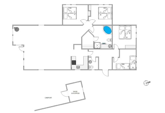 Sommerhuset byder på plads til 8 personer fordelt på 4 charmerende soverum, der skaber den perfekte ramme for afslapning og privatliv. I opholdsrummet spreder brændeovnen en varm og indbydende atmosfære, mens den behagelige gulvvarme omfavner jer med blid varme, uanset årstiden. Det veludstyrede køkken med opvaskemaskine gør madlavningen til en fornøjelse og giver dig mere tid til at nyde selskabet med dine kære.