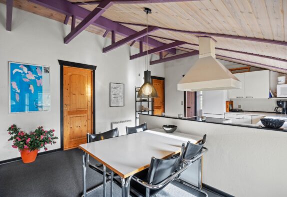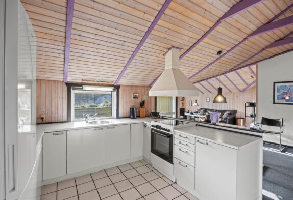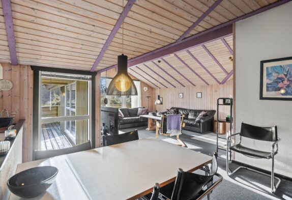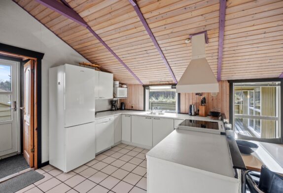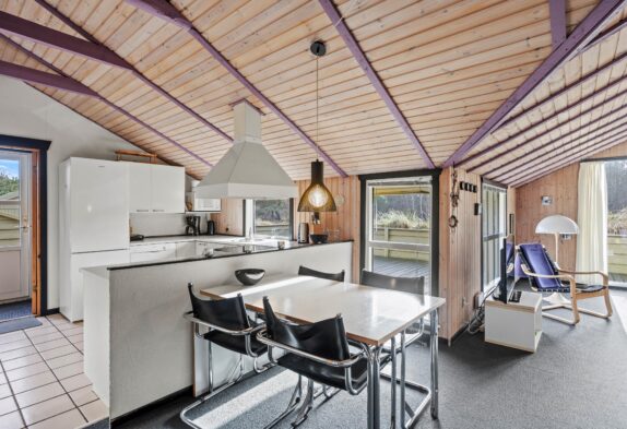 Feriehuset med den gode indretning er til maksimalt 4 personer og 1 hund. Det åbne køkken er kombineret med stuen og spiseafdelingen og udgør et stort opholdsrum, hvor I har god plads til at være sammen. Hjælp hinanden med aftensmaden eller tag et spil kort rundt om stuebordet – her er alle muligheder for hyggeligt samvær.