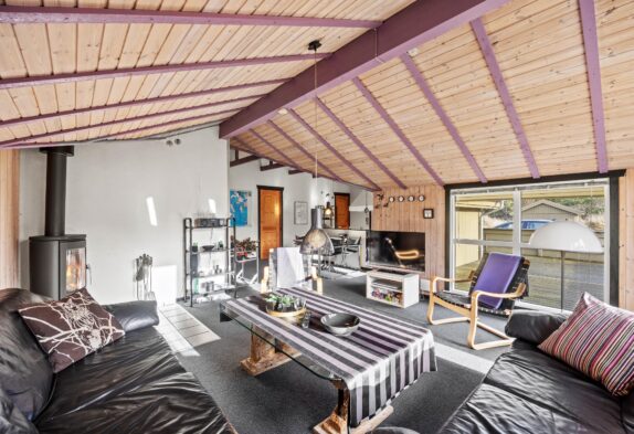 I stuen står brændeovnen, som især på kolde og regnfulde dage vil sprede god feriestemning og masser af dejlig varme. Har I brug for at blive varmet ekstra igennem, kan I læne jer tilbage i husets sauna og nyde feriefreden fuldt ud.