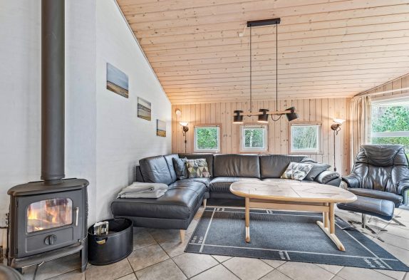 Familiens mødested bliver det store opholdsrum med både køkken, spisebord og sofahjørne forbundet i ét, med den klassiske brændeovn som midtpunkt. Her kan alle følge med i madlavningen, mens nogle hjælpes ad i køkkenet, og andre sørger for, bordet bliver dækket. Og efter maden kan I sætte jer godt til rette foran tv’et til en god film og en gang popcorn.