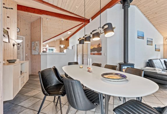 Træd indenfor og mærk straks den imødekommende og indbydende atmosfære, som er et resultat af de varme træelementer og de rødbrune loftsbjælker. Med sine i alt 118 m² er der god plads til 8 personer – og det er ikke kun hele familien, der kan være her. Familiens hund er selvfølgelig også velkommen.